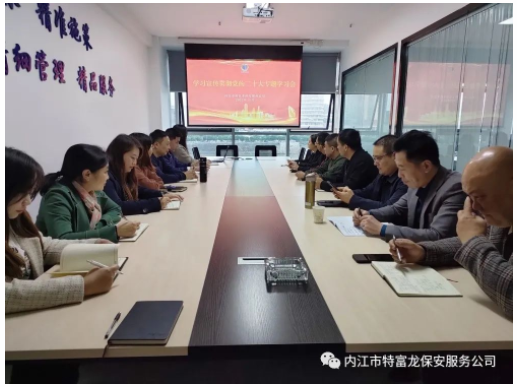 為深入貫徹學(xué)習(xí)黨的二十大精神,進(jìn)一步學(xué)習(xí)好、領(lǐng)會(huì)好黨的二十大精神,特別是習(xí)近平總書記代表黨的十九屆中央委員會(huì)作的工作報(bào)告精神。11月4日,內(nèi)江市特富龍保安服務(wù)公司召開支部理論學(xué)習(xí)(擴(kuò)大)會(huì),專題學(xué)習(xí)了黨的二十大報(bào)告精神,全體黨員和群眾代表作了交流發(fā)言。