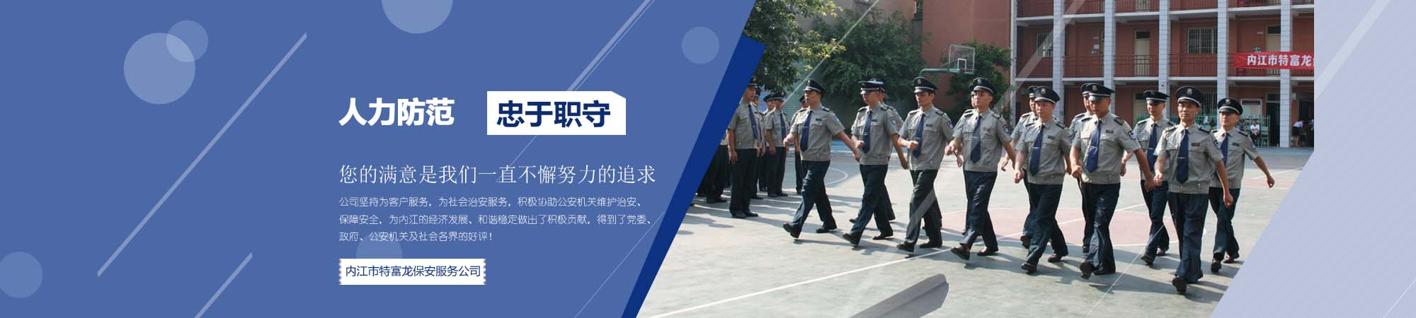 公司是四川省保安協(xié)會(huì)第五屆副會(huì)長(zhǎng)單位,是內(nèi)江市市級(jí)行政事業(yè)單位安全技術(shù)防范系統(tǒng)類(lèi)協(xié)議供應(yīng)商,先后被四川省公安廳、四川省工會(huì)、四川省共青團(tuán)省委評(píng)為“全省先進(jìn)保安服務(wù)公司”,并于2009年通過(guò)iso9001認(rèn)證,取得了2008質(zhì)量體系認(rèn)證證書(shū)。公司堅(jiān)持為客戶(hù)服務(wù),為社會(huì)治安服務(wù),積極協(xié)助公安機(jī)關(guān)維護(hù)治安、保障安全,為內(nèi)江的經(jīng)濟(jì)發(fā)展、和諧穩(wěn)定做出了積極貢獻(xiàn),得到了黨委、政府、公安機(jī)關(guān)及社會(huì)各界的好評(píng)!